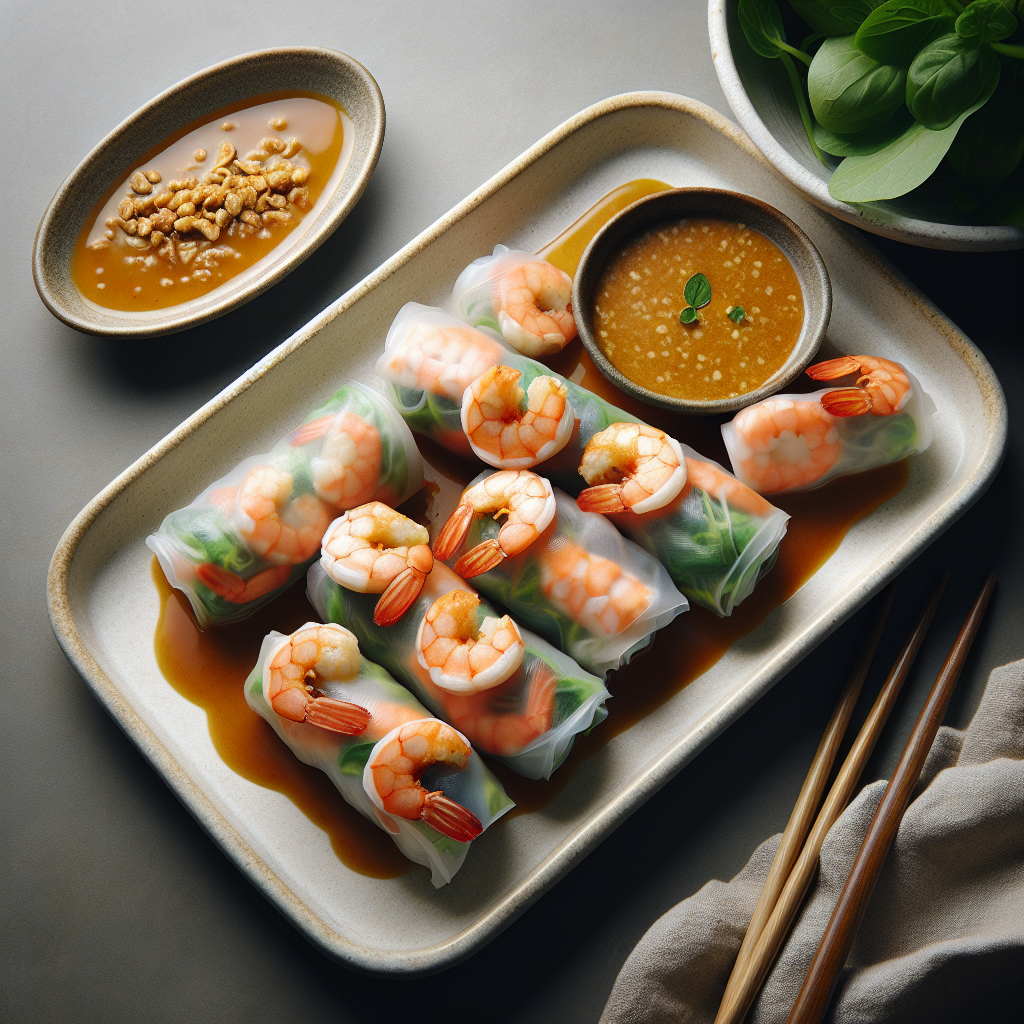 **Brief Description: ** These Vietnamese summer rolls are fresh, vibrant, and packed with flavors. The succulent prawns and creamy peanut sauce make them a delightful dish for a light summer meal.
