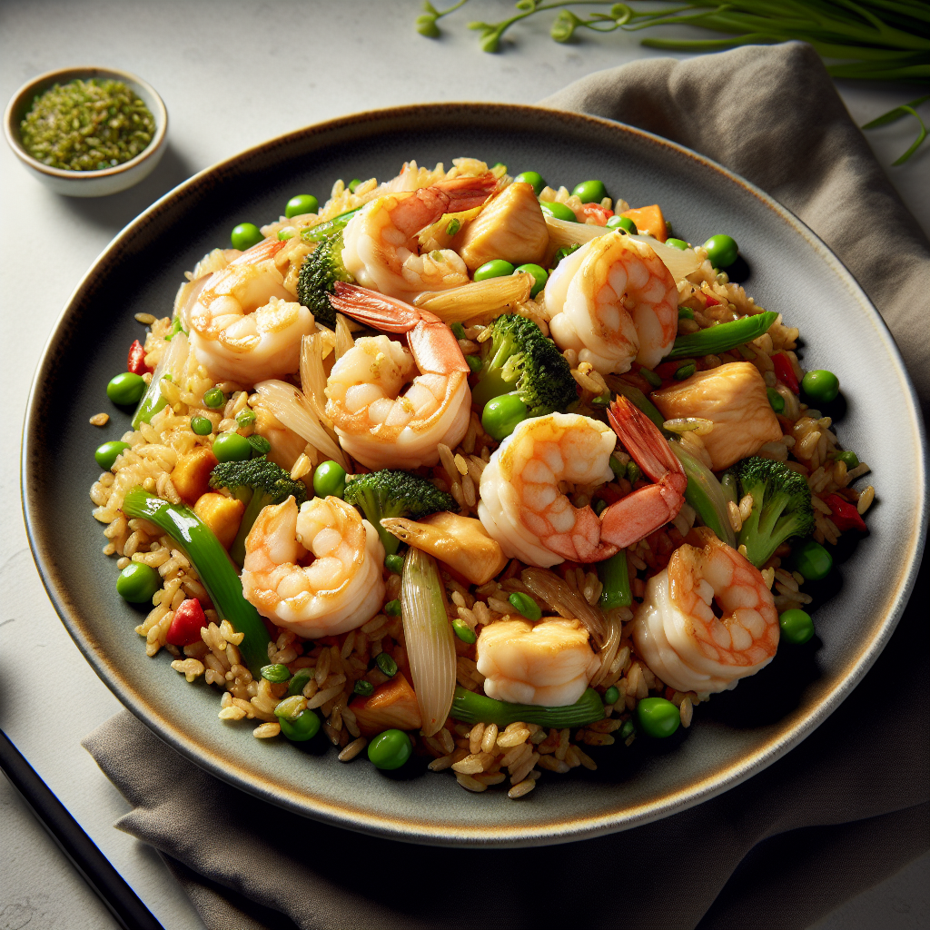 **Brief Description: ** This Chinese Chicken and Shrimp Fried Rice is a flavorful and satisfying dish that makes for a perfect lunch. Packed with protein from chicken and shrimp, this fried rice is both delicious and fulfilling.