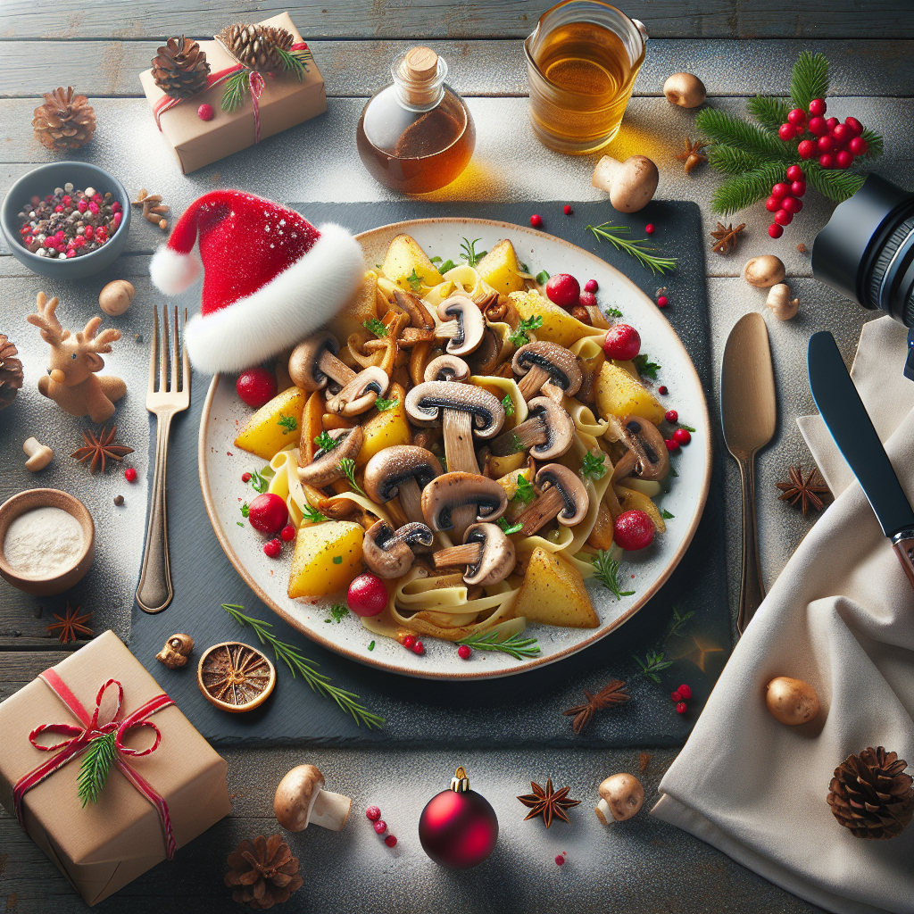 **Brief Description: ** This hearty and flavorful Christmas dish combines the earthy flavors of mushrooms and potatoes with the comforting goodness of pasta, making it a perfect choice for a festive meal.