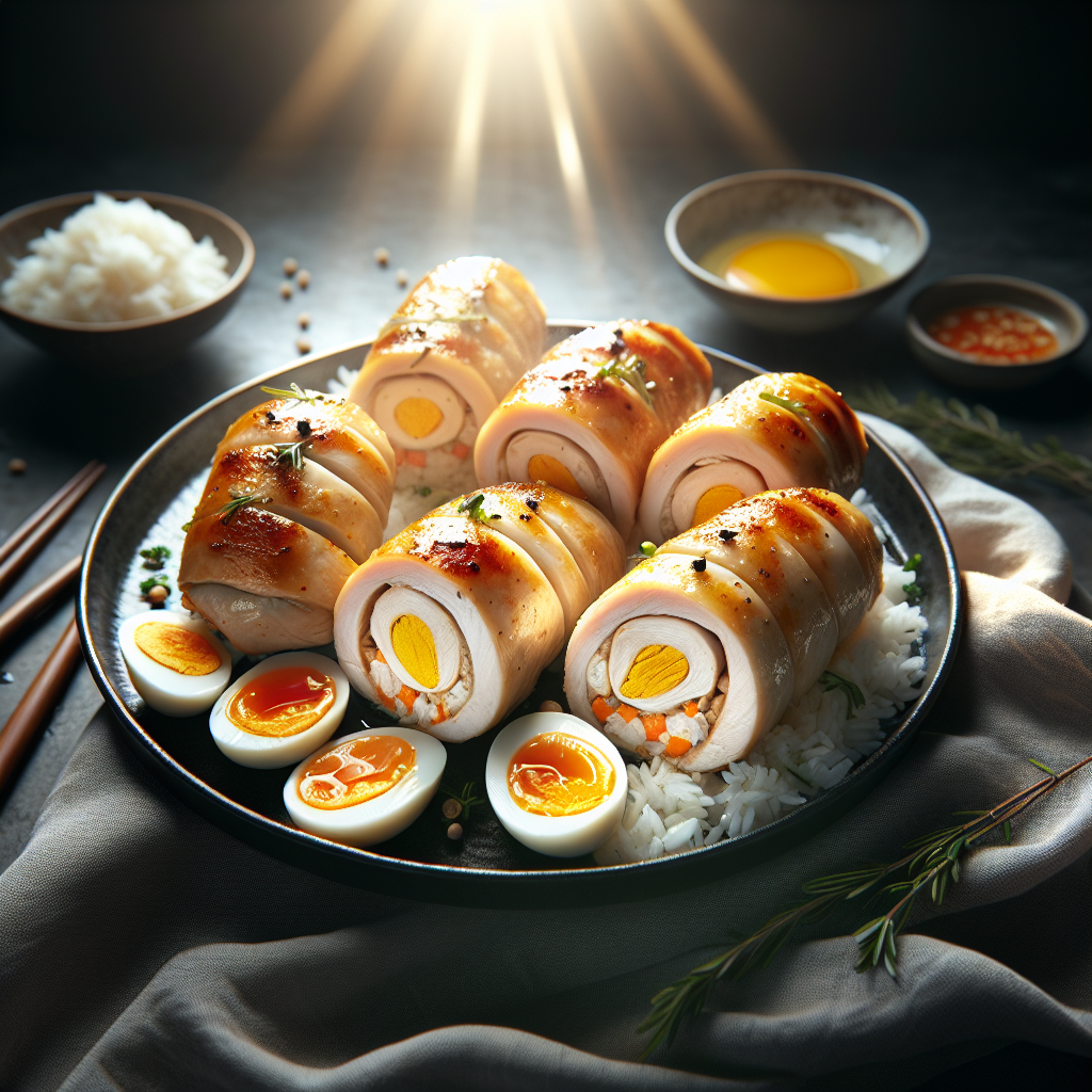 Brief Description: These Mediterranean-inspired stuffed chicken rolls are a delicious appetizer that combines the flavors of garlic, spinach, and mushrooms, all rolled up in a juicy chicken breast.