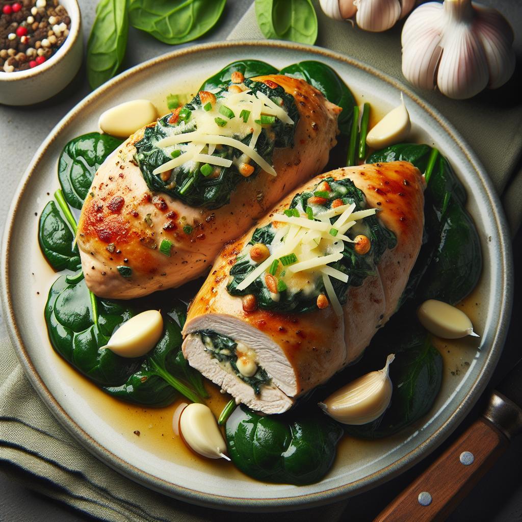 Recipe Title: Spinach and Garlic Stuffed Chicken Breasts