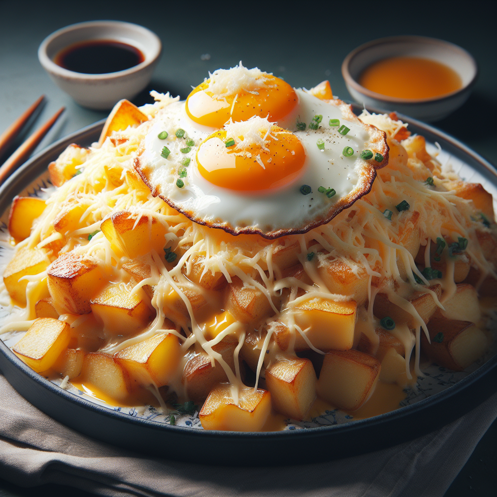 Brief Description: This recipe combines the heartiness of potatoes with the creaminess of eggs and cheese, all elevated by a touch of soy sauce.