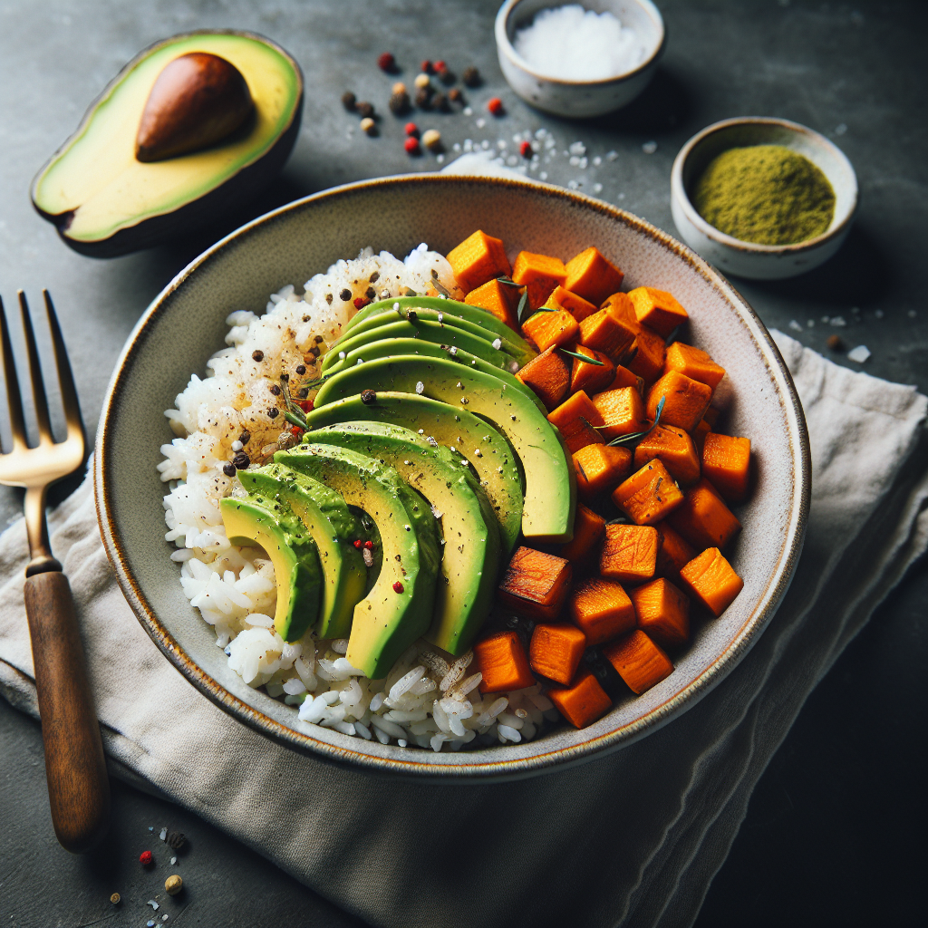 Recipe Title: Protein-Packed Sweet Potato and Avocado Rice Bowl