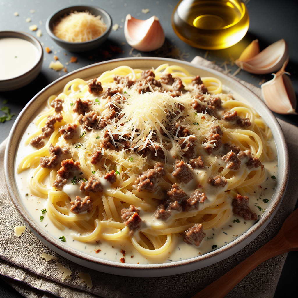 Recipe Title: Creamy Beef Parmesan Pasta
