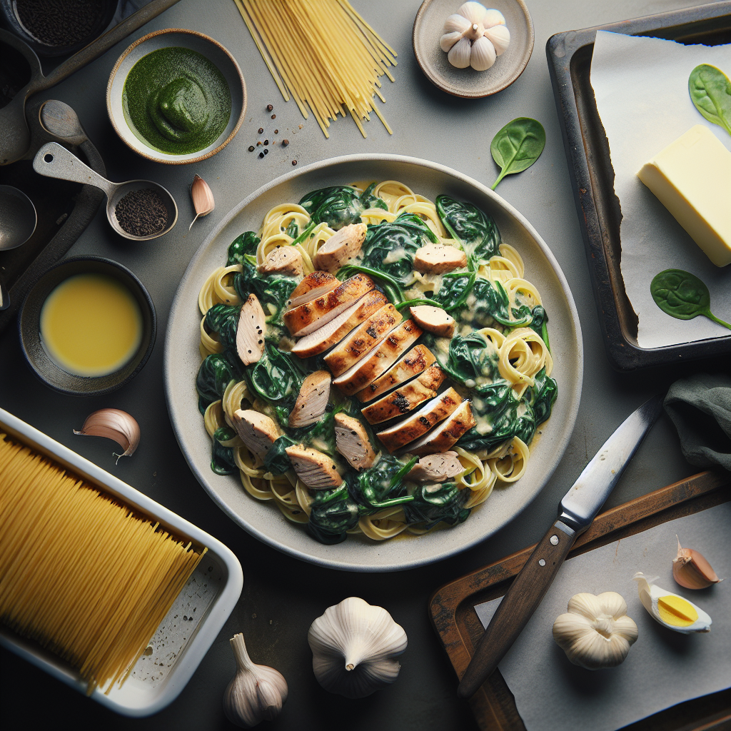Recipe Title: Creamy Garlic Chicken and Spinach Pasta