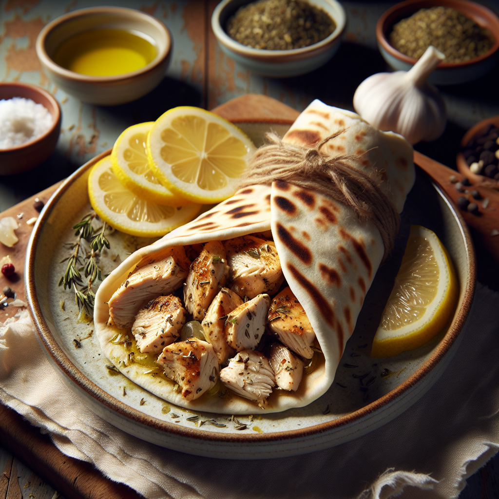 Brief Description: This recipe combines juicy lemon chicken with fresh vegetables and creamy tzatziki sauce in a warm pita wrap for a quick and satisfying Greek-inspired meal.
