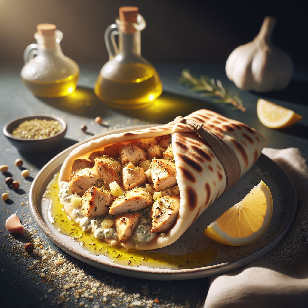 Brief Description: A flavorful and refreshing Greek-inspired chicken wrap with a zesty lemon marinade.