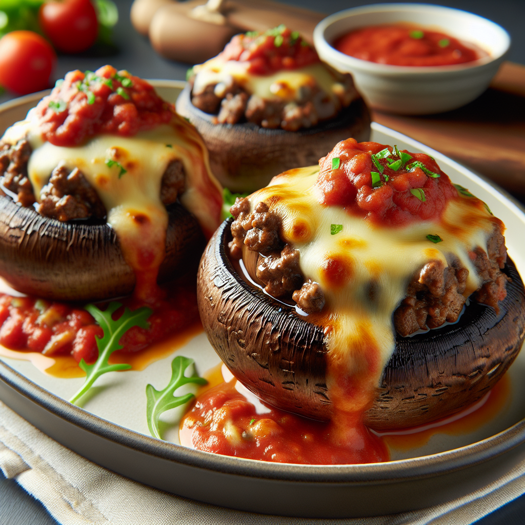 Recipe Title: Italian Beef and Cheese Stuffed Portobello Mushrooms