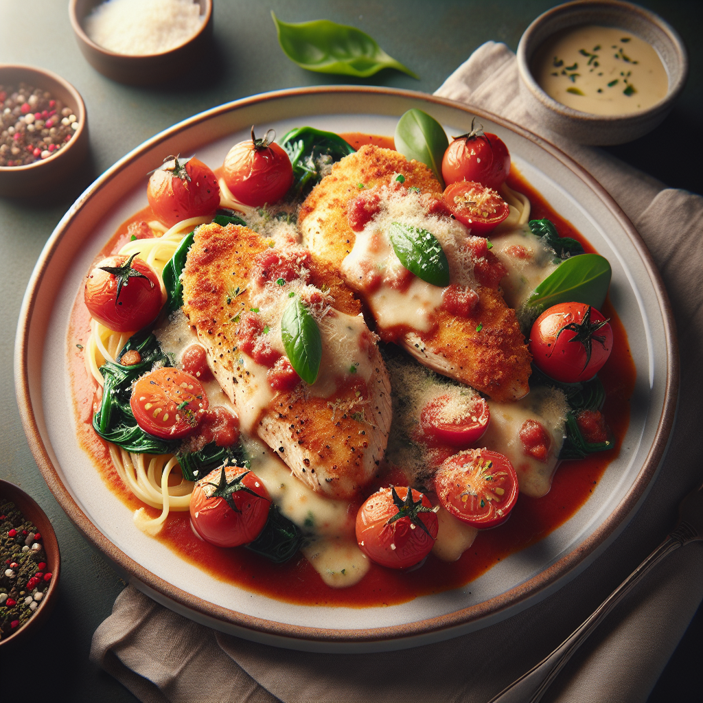 Brief Description: A classic Italian dish with breaded chicken topped with marinara sauce and melted cheese.