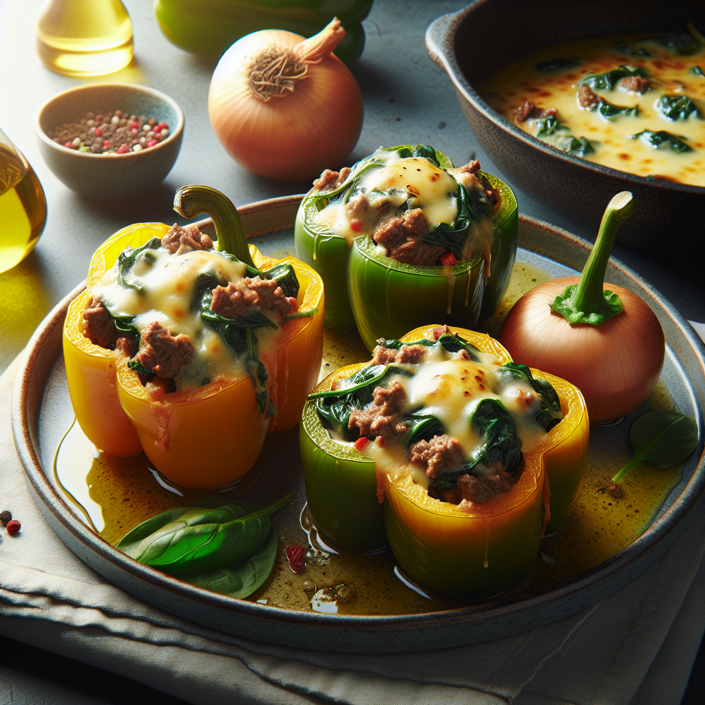 Recipe Title: Cheesy Beef and Spinach Stuffed Bell Peppers