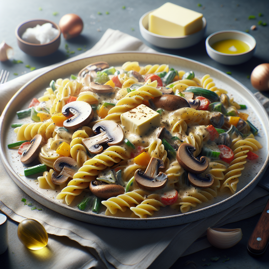 Recipe Title: Creamy Mushroom and Vegetable Pasta