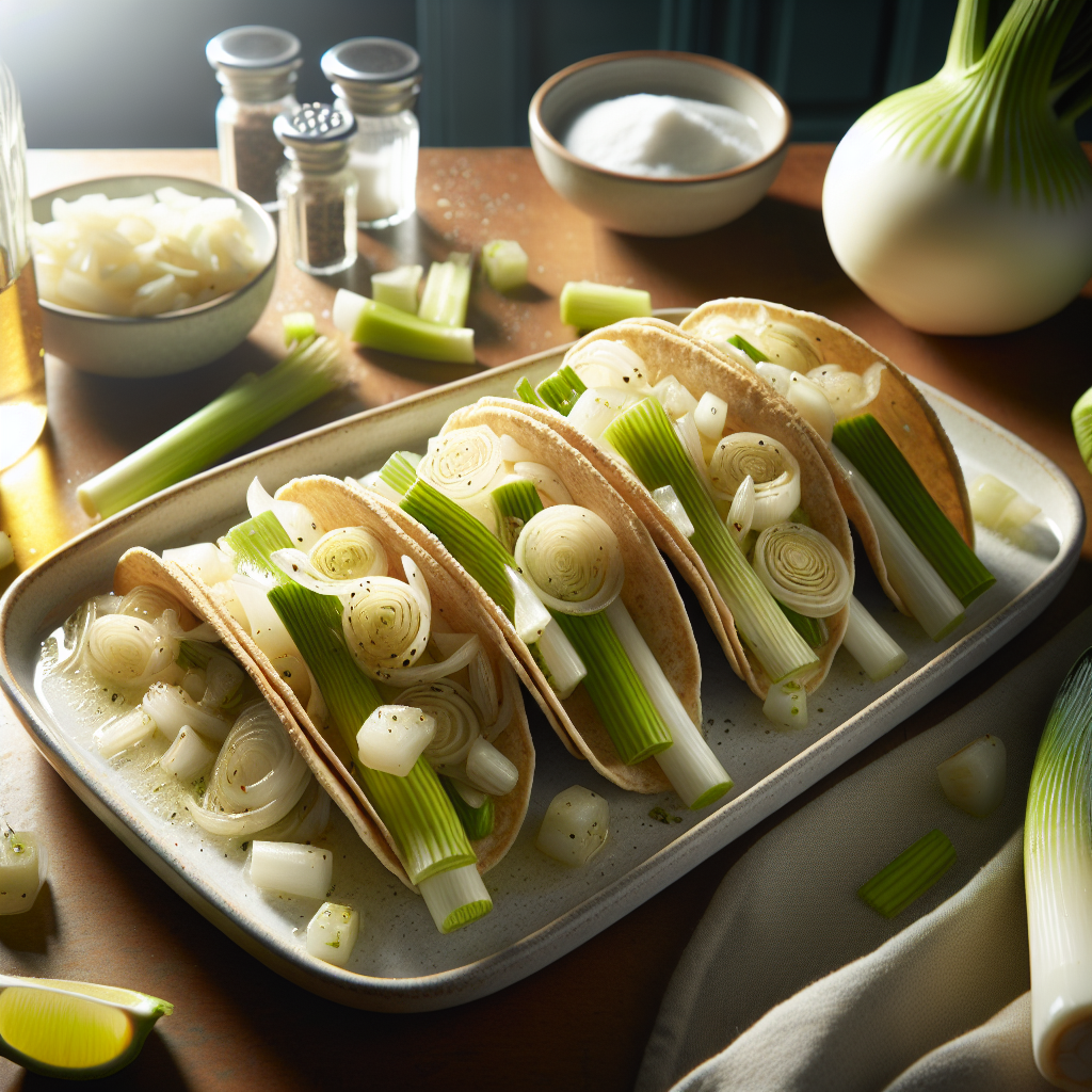 Brief Description: These flavorful and unique tacos combine the earthy flavors of leek and celeriac with Mexican spices for a delicious twist on a classic dish.