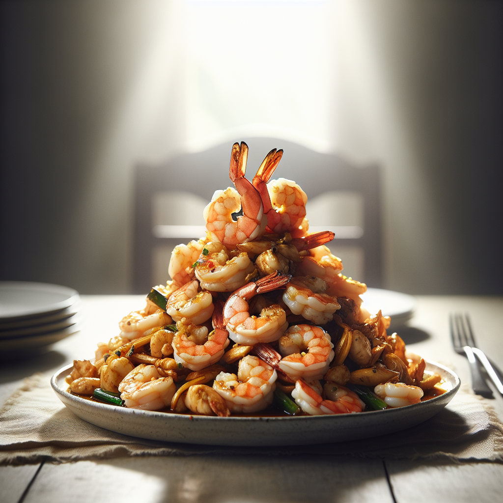 8. Cook for another 2-3 minutes until the sauce thickens slightly and coats the shrimp, chicken, and vegetables.