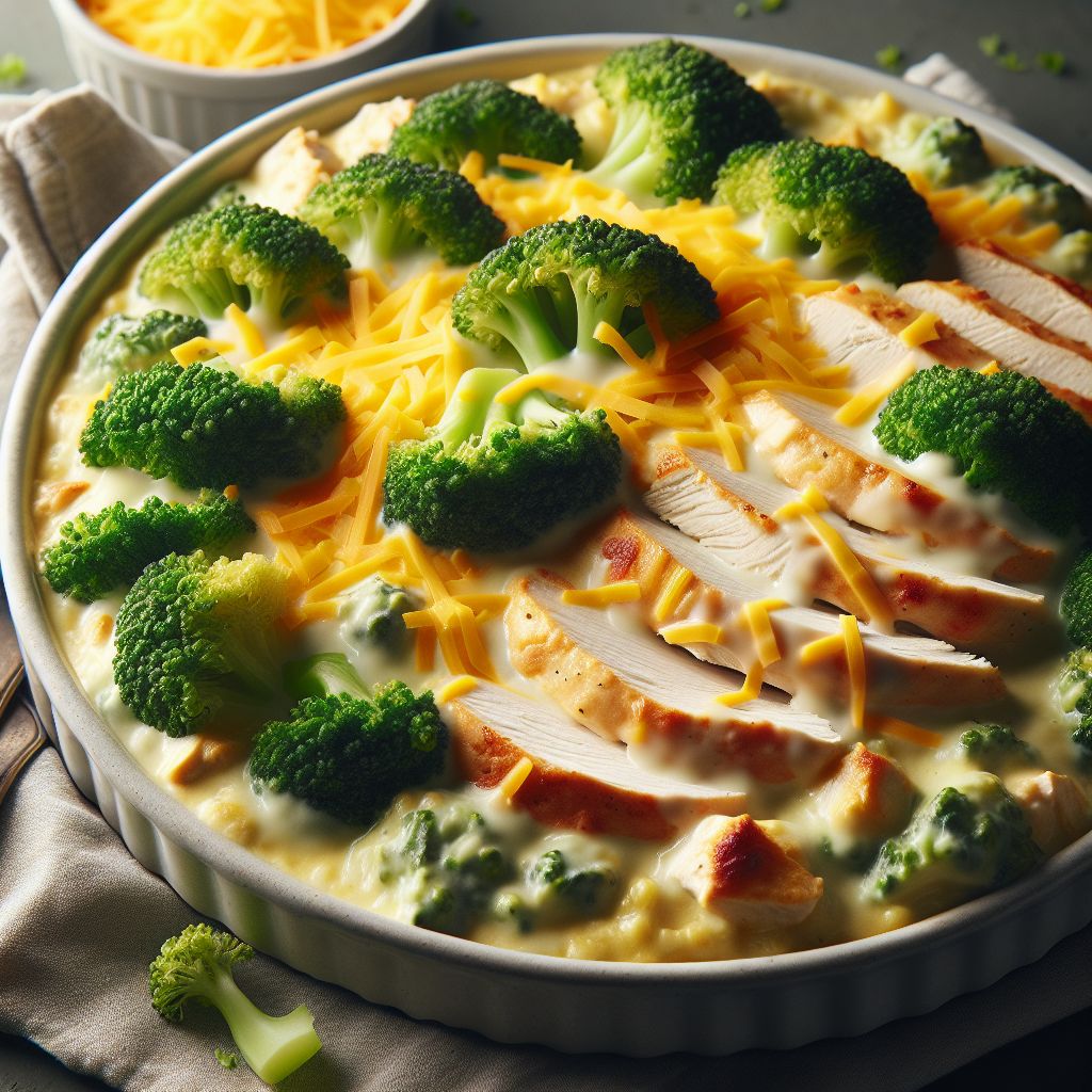 Brief Description: A comforting and delicious casserole that combines tender chicken, nutritious broccoli, and gooey cheese in one satisfying dish.