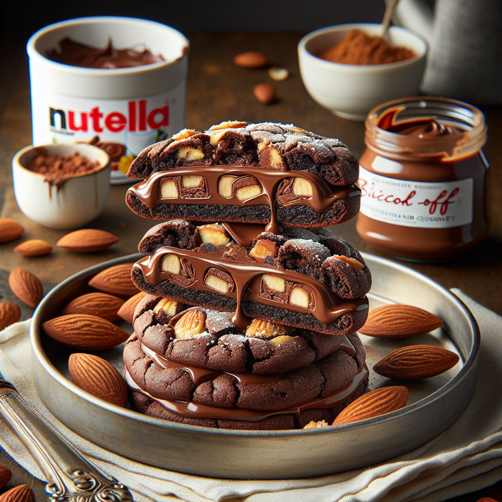 Recipe Title: Nutella and Biscoff Stuffed Chocolate Almond Cookies