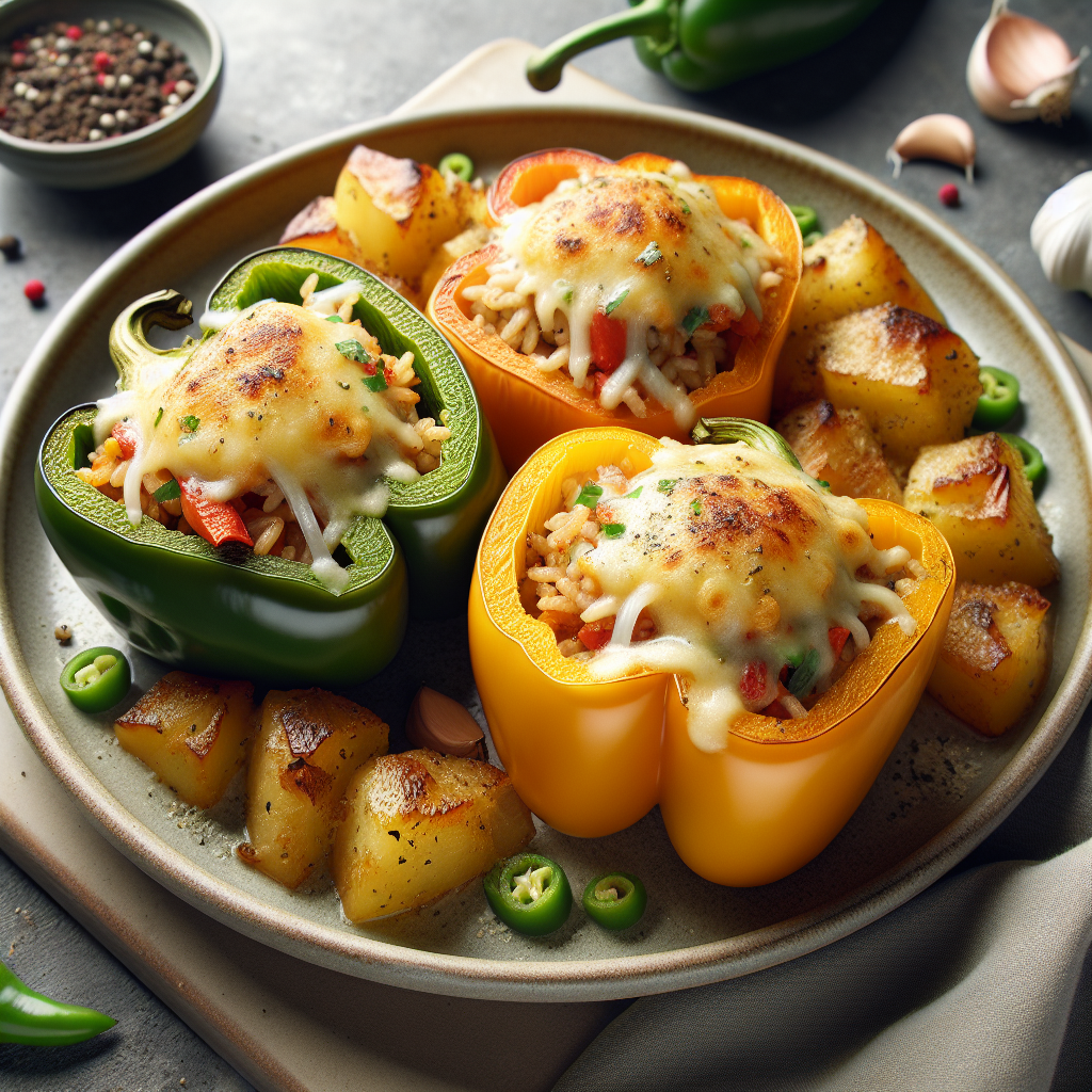 Recipe Title: Stuffed Bell Peppers with Cheesy Garlic Potatoes