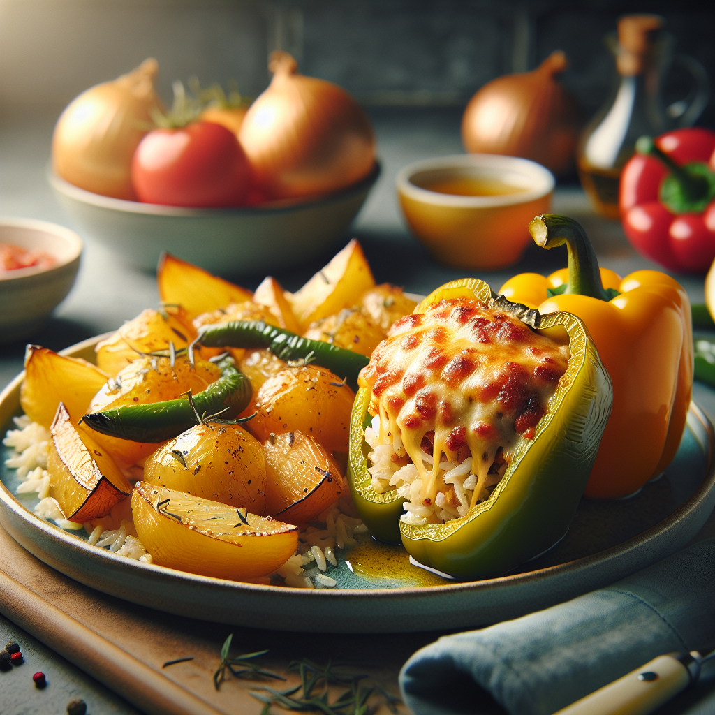 Brief Description: A delicious and comforting dinner featuring cheesy stuffed bell peppers served with lemon-honey glazed potatoes. This recipe is beginner-friendly and sure to satisfy your taste buds.