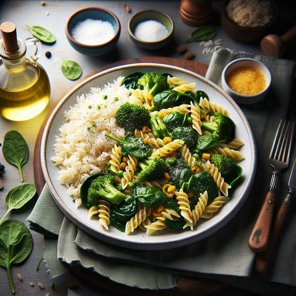 Recipe Title: Mediterranean Vegetable Pasta with Spinach and Broccoli