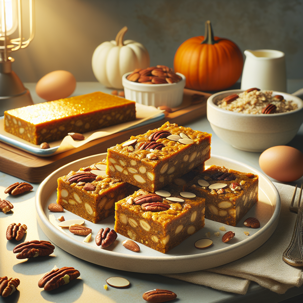 Brief Description: These gluten-free, low-carb pumpkin pecan breakfast bars are a delicious and nutritious way to start your day. Packed with warm spices and wholesome ingredients, they make a perfect grab-and-go breakfast or snack.