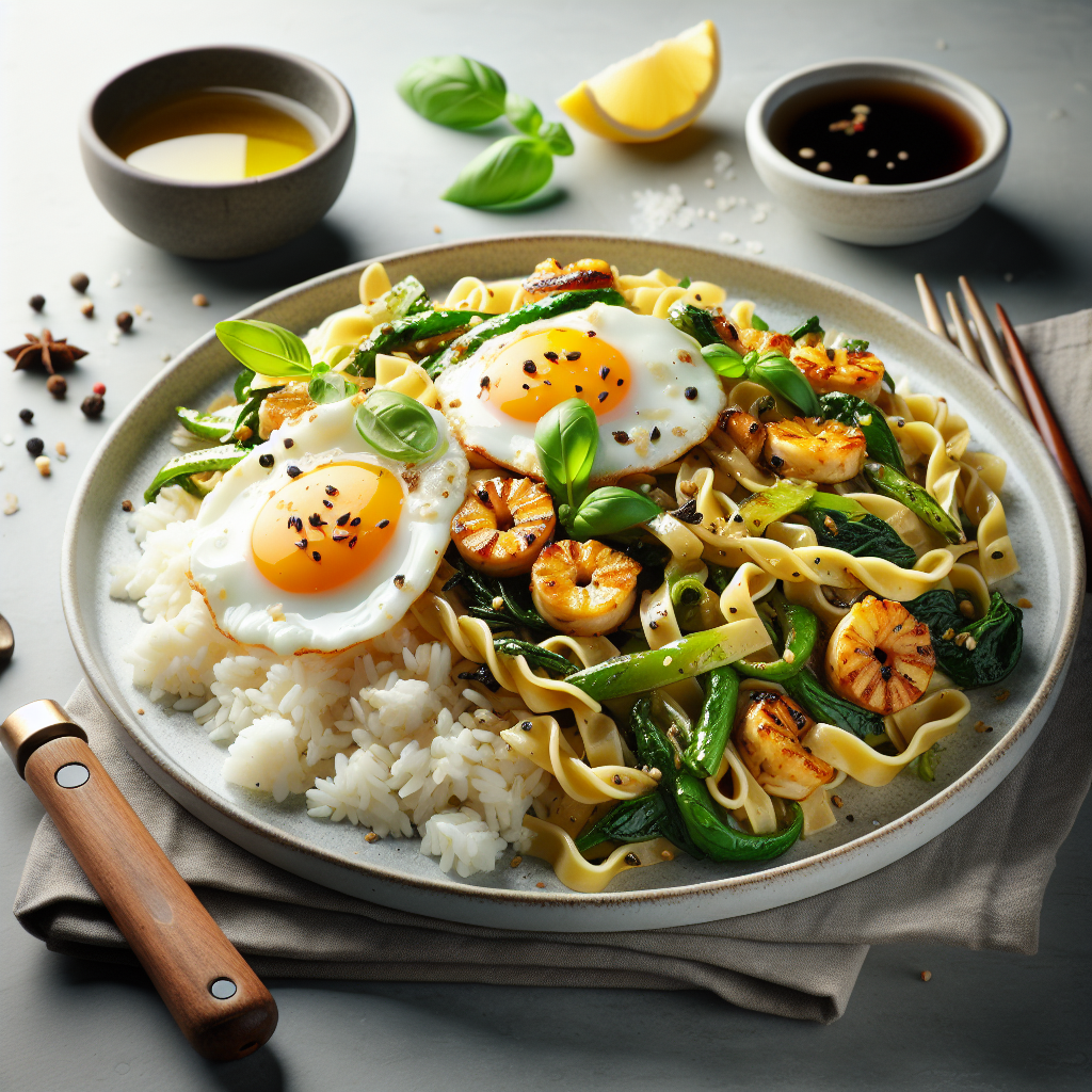 Brief Description: This recipe combines the savory flavors of a honey ginger glazed stir-fry with the bright and fresh basil lemon pasta for a delicious and satisfying meal.