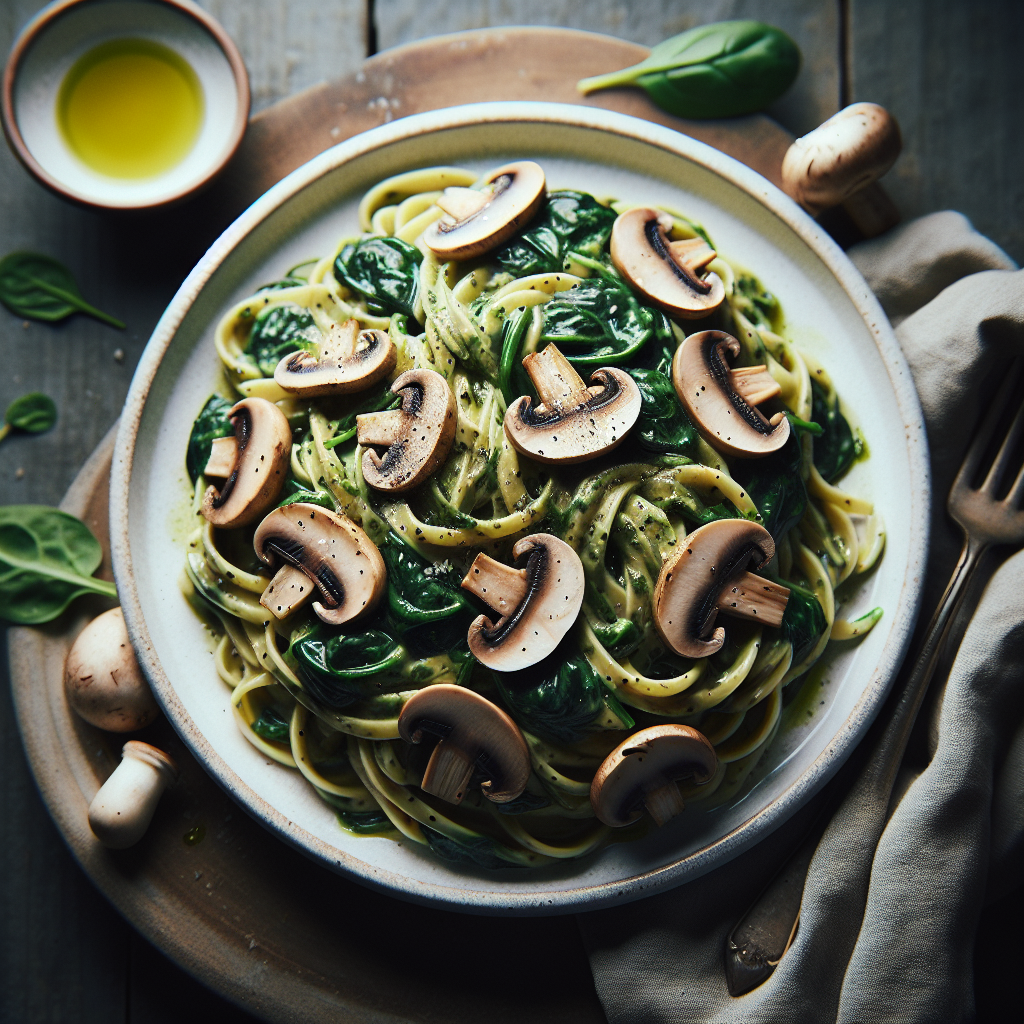 Brief Description: This creamy and flavorful pasta dish combines the earthy flavors of mushrooms and the freshness of spinach in a rich cream sauce.