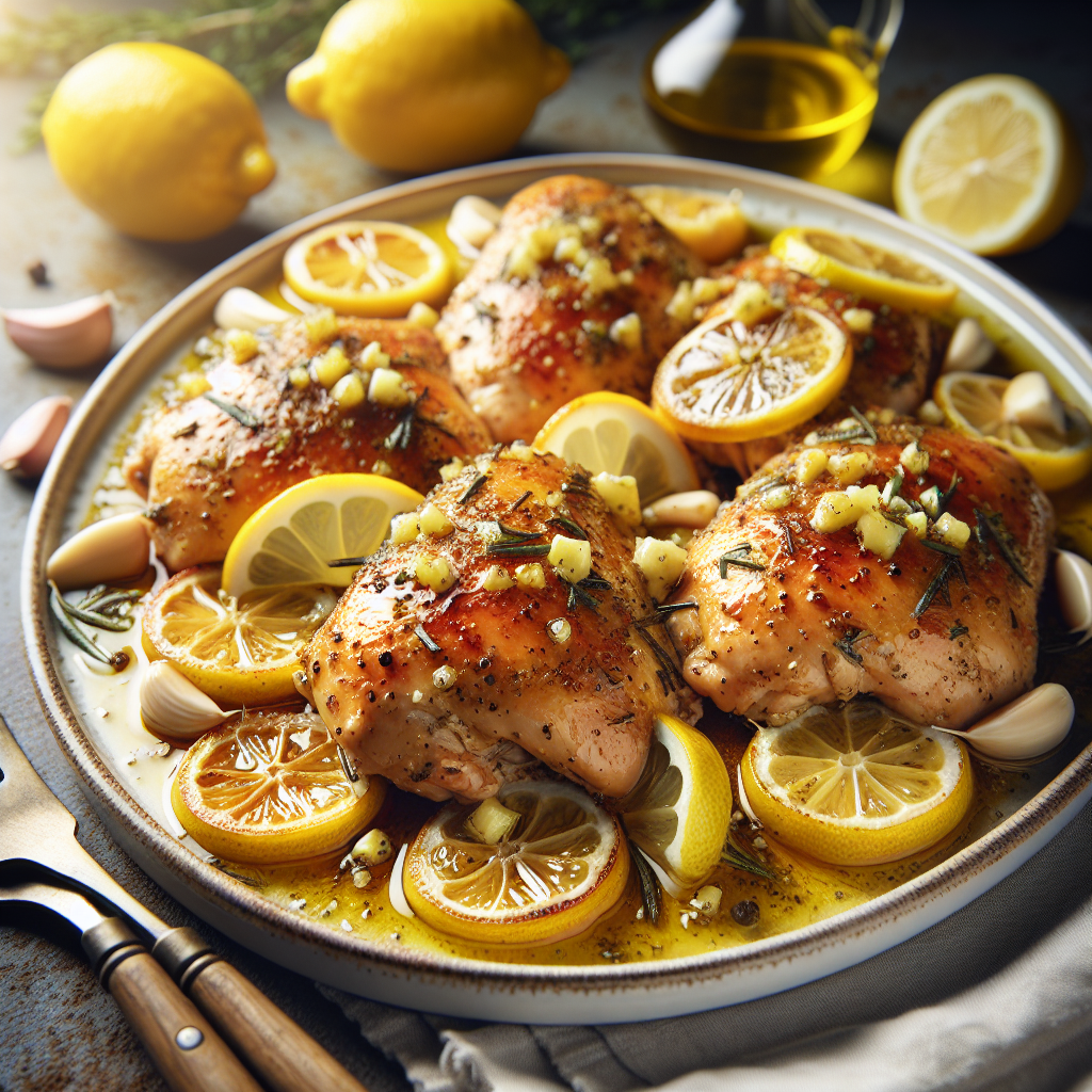 Brief Description: This recipe features juicy and flavorful roasted chicken thighs marinated in a zesty lemon garlic marinade.