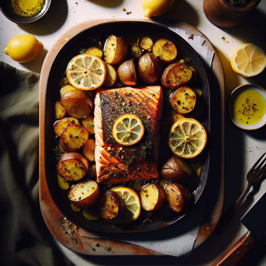 Recipe Title: Greek Lemon Salmon with Roasted Potatoes