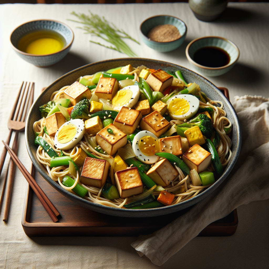 Brief Description: This flavorful and satisfying vegetarian stir-fry combines crispy tofu and a medley of colorful vegetables with garlic butter noodles, creating a delicious Chinese-inspired meal.