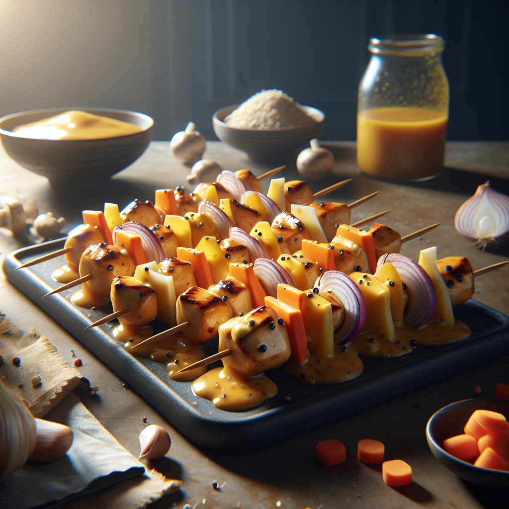 Recipe Title: Cheesy Honey Garlic Chicken Skewers
