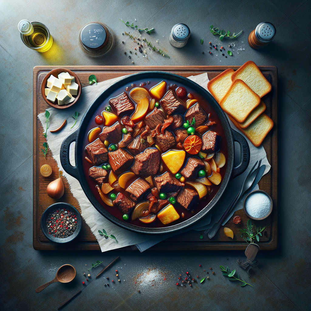 Brief Description: A hearty and comforting beef stew slow-cooked to perfection, filled with tender beef, vegetables, and flavorful broth.