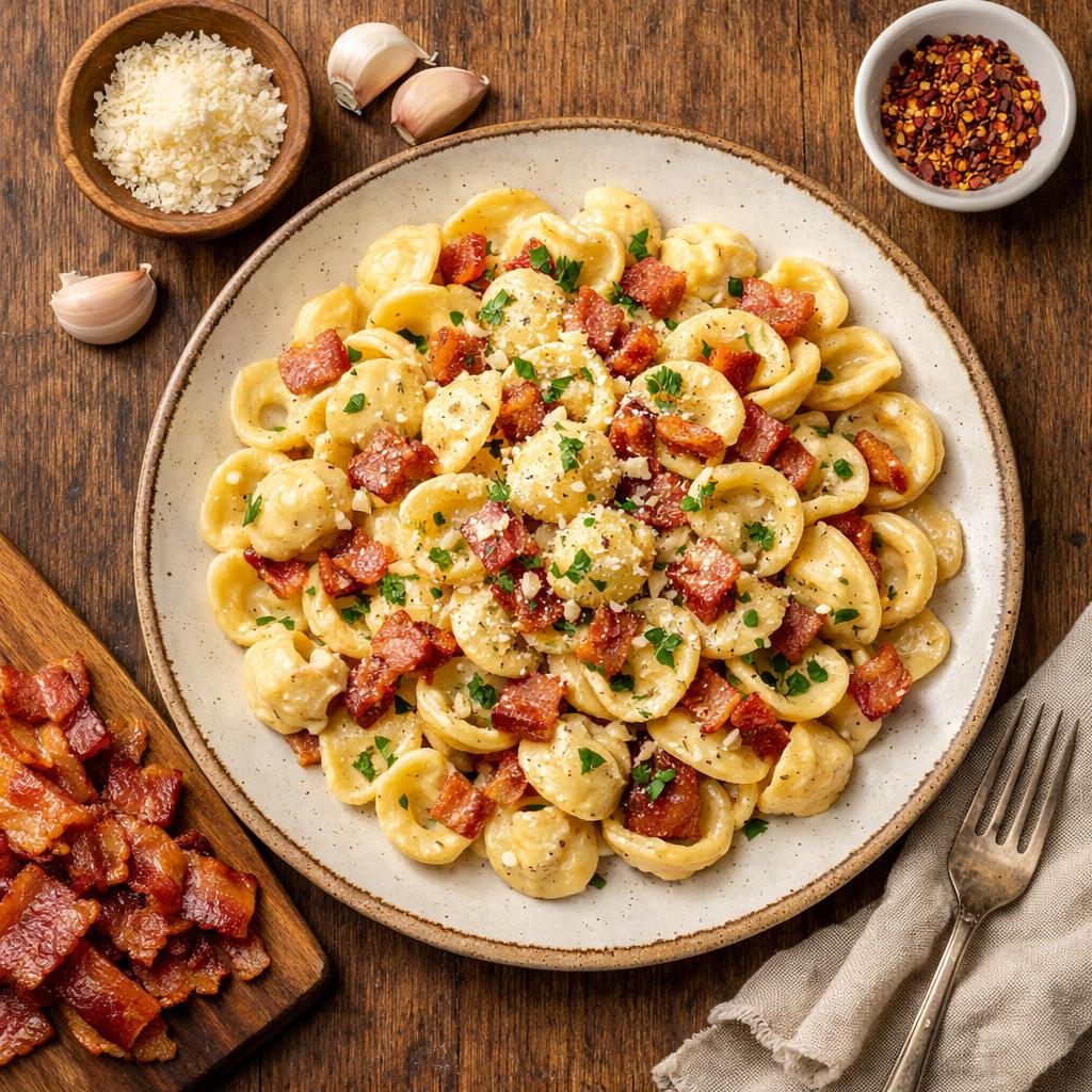 Recipe Title: Creamy Garlic Pasta with Bacon