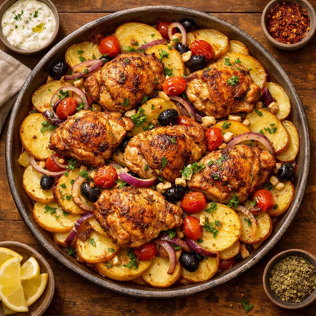 Recipe Title: Mediterranean Chicken and Potato Bake